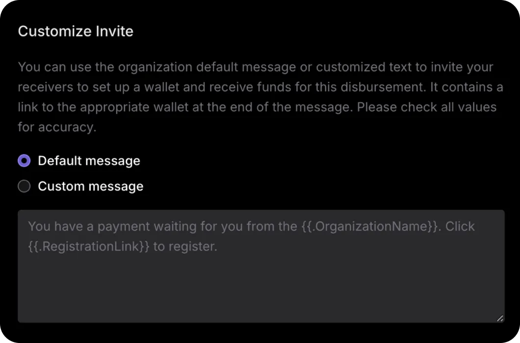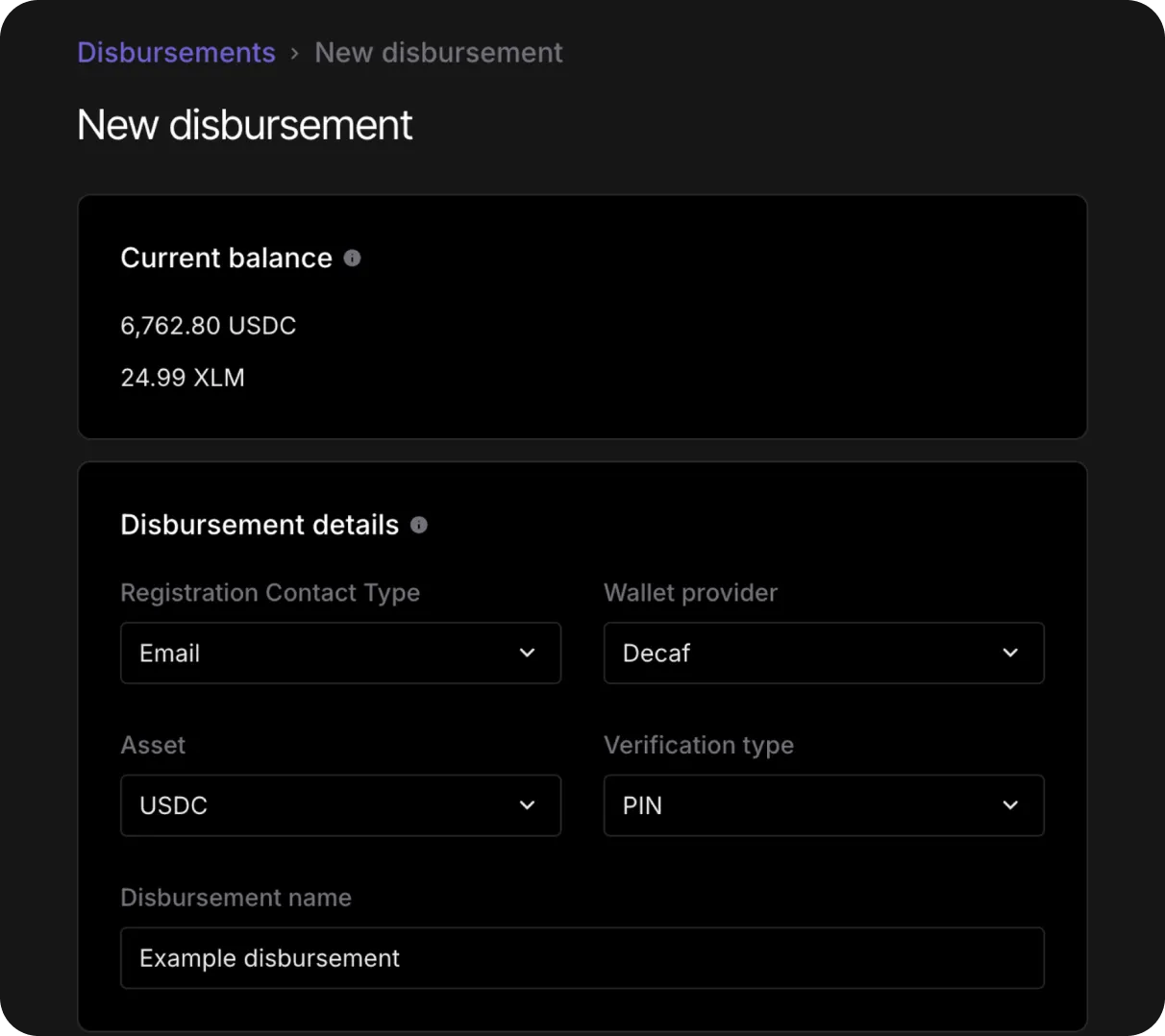 This step configures how the disbursement will function and how beneficiaries will be contacted.