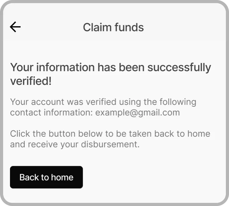 Beneficiaries receive and access their disbursements through the Decaf Wallet. The first time they receive funds, they complete a simple, guided verification process. After this initial step, all future disbursements arrive automatically.